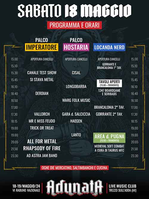 SABATO 18 MAGGIO APERTURA CANCELLI ore 15:00