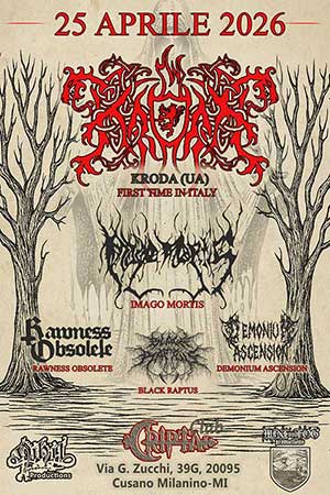 Ultime notizieredazione2026-01-26T20:49:45+01:00SAMANTHA FISH, in Italia a giugnoredazione6662026-01-25T14:12:50+01:00MALUM, annunciano il nuovo album e pubblicano il primo singoloredazione2026-01-24T18:18:43+01:00KUBLAI KHAN, annunciati al Revolver di Veneziaredazione2026-01-24T18:13:51+01:00PIER GONELLA, rimette in moto il suo progetto solista con il coinvolgimento di un altro membro dei Necrodeathredazione6662026-01-24T13:08:09+01:00SAMURAI PIZZA CATS, il nuovo album in uscita a fine marzoredazione6662026-01-24T13:04:33+01:00CRYSTAL LAKE, il video dell’ultimo singolo, “Everblack”redazione6662026-01-24T13:01:24+01:00SCORPIONS, addio a Francis Buchholzredazione6662026-01-24T00:50:13+01:00SAILLE, la premiere di “Deception of Decadence”, il nuovo singoloredazione2026-01-23T20:14:55+01:00THE MON, il progetto di Urlo degli Ufomammut presenta il singolo “Incantation”redazione6662026-01-22T23:40:22+01:00MONSTROSITY, il video di “The Colossal Rage”redazione2026-01-22T20:42:52+01:00ZU, il video di “Hymn of the Pearl” e tutte le date del tour europeoredazione2026-01-22T20:32:34+01:00DEATHMANIA FEST, il 7 febbraio con Tenebro, Sepolcro, Grumo e non soloredazione2026-01-22T20:24:45+01:00OPETH, pubblicano un video nel quale eseguono “§7”redazione6662026-01-22T12:59:17+01:00DEF LEPPARD, si intitola “Rejoice” il nuovo singolo!redazione6662026-01-22T09:34:57+01:00DEATH DIES, copertina e dettagli di “Maledicti In Aeternvm”redazione6662026-01-22T09:30:38+01:00MYRATH, il nuovo singolo “Soul Of My Soul”redazione6662026-01-22T09:18:38+01:00CRYSTAL SUN, venerdì esce “The Trace You Left”, l’album dedicato ad Ale Mozredazione6662026-01-22T09:12:05+01:00NMB , il video del nuovo singolo “Hurt People”redazione2026-01-21T20:43:43+01:00EXODUS, annunciano il nuovo album “Goliath”redazione2026-01-21T20:29:03+01:00LEAVES’ EYES, presentano la title track del nuovo EP atteso per il 6 marzoredazione2026-01-21T20:14:38+01:00MONSTROSITY, il nuovo album sarà intitolato “Screams from Beneath the Surface” ed è disponibile il primo singoloredazione6662026-01-20T23:56:14+01:00IL SEGNO DEL COMANDO, nuovo video in arrivoUltimi articoliredazione6662026-01-25T14:43:41+01:00GORRCH – “Stillamentum”redazione2026-01-25T13:58:26+01:00BÖDEL – “Dödsbringaren”redazione6662026-01-25T13:57:31+01:00MINDFEELS – “2WO”redazione6662026-01-25T13:57:23+01:00MEGADETH – “Megadeth”redazione6662026-01-24T12:09:10+01:00PANDEMONIUM OVER LUGANO @ Studio Foce | Lugano (CH) 17.1.2026. La vitalità della scena metal in tutte le sue declinazioni.redazionePH2026-01-24T12:09:07+01:00SHORES OF NULL @ Pandemonium Over Lugano | Studio Foce (CH) 17.01.2026. Le Foto!redazionePH2026-01-24T12:08:58+01:00DEWFALL @ Pandemonium Over Lugano | Studio Foce (CH) 17.01.2026. Le Foto!redazionePH2026-01-24T12:03:22+01:00DESPISING AGE @ Pandemonium Over Lugano | Studio Foce (CH) 17.01.2026. Le Foto!redazione2026-01-24T11:53:31+01:00AA.VV. – “The Downward Spiral Redux” (Tribute)redazionePH2026-01-24T12:03:30+01:00LOUDBLOOD @ Pandemonium Over Lugano | Studio Foce (CH) 17.01.2026. Le Foto!redazione6662026-01-24T14:06:47+01:00MAYHEM MAVERICKS – “Mayhem Mavericks”redazionePH2026-01-24T12:03:38+01:00KEMAS @ Pandemonium Over Lugano | Studio Foce (CH) 17.01.2026. Le Foto!redazione2026-01-22T23:12:09+01:00SANCTVS – “De l’Abîme au Plérôme”redazione6662026-01-22T23:05:43+01:00CITRINITAS – “Unending Descent” (Demo)redazione2026-01-20T23:46:07+01:00OBSCURITY – “Ascheregen”redazione6662026-01-20T23:43:04+01:00DISCREATION – “Iron Times MMXXV”redazione6662026-01-20T23:17:16+01:00HÉR – “Monochrome”redazione6662026-01-20T00:09:13+01:00OLD SORCERY – “The Outsider”redazione6662026-01-19T12:59:21+01:00THERION – “Con Orquesta” (Live)redazione6662026-01-19T11:55:21+01:00LIONHEART – “Valley Of Death II”redazione2026-01-19T00:18:34+01:00TEMPTRESS – “Hear”redazione6662026-01-18T19:53:26+01:00ROTH – “Alles Endet”FOTO!redazionePH2026-01-24T12:09:07+01:00SHORES OF NULL @ Pandemonium Over Lugano | Studio Foce (CH) 17.01.2026. Le Foto!redazionePH2026-01-24T12:08:58+01:00DEWFALL @ Pandemonium Over Lugano | Studio Foce (CH) 17.01.2026. Le Foto!redazionePH2026-01-24T12:03:22+01:00DESPISING AGE @ Pandemonium Over Lugano | Studio Foce (CH) 17.01.2026. Le Foto!redazionePH2026-01-24T12:03:30+01:00LOUDBLOOD @ Pandemonium Over Lugano | Studio Foce (CH) 17.01.2026. Le Foto!redazionePH2026-01-24T12:03:38+01:00KEMAS @ Pandemonium Over Lugano | Studio Foce (CH) 17.01.2026. Le Foto!redazionePH2025-12-18T15:24:39+01:00NEGRITA @ Gran Teatro Geox (PD) 16.12.2025. Le Foto!redazionePH2025-12-14T12:38:13+01:00FORGOTTEN TOMB @ Damage Inc Live Club (VR) 5.12.2025. Le Foto!redazionePH2025-12-10T00:05:19+01:00DARKEND @ Damage Inc Live Club (VR) 5.12.2025. Le Foto!redazionePH2025-12-09T23:39:09+01:00DAWN OF A DARK AGE @ Damage Inc Live Club (VR) 5.12.2025. Le Foto!redazionePH2025-12-09T23:19:31+01:00VAÜR @ Damage Inc Live Club (VR) 5.12.2025. Le Foto!redazionePH2025-12-07T20:24:39+01:00ZMYRNA @ Unholy Dungeon Fest Vol. II | Slaughter Club (MI) 29.11.2025. Le Foto!redazionePH2025-12-07T13:57:44+01:00NUBIVAGANT @ Unholy Dungeon Fest Vol. II | Slaughter Club (MI) 29.11.2025. Le Foto!redazionePH2025-12-07T14:08:00+01:00STREGA @ Unholy Dungeon Fest Vol. II | Slaughter Club (MI) 29.11.2025. Le Foto!redazionePH2025-12-06T14:22:50+01:00CANTICUM DIABOLI @ Unholy Dungeon Fest Vol. II | Slaughter Club (MI) 29.11.2025. Le Foto!redazionePH2025-12-06T13:15:00+01:00CORPO DI GUARDIA @ Unholy Dungeon Fest Vol. II | Slaughter Club (MI) 29.11.2025. Le Foto!redazionePH2025-11-18T23:21:47+01:00CIRCLE OF WITCHES @ Dedolor Music Headquarter (CO) 15.11.2025. Le Foto!redazionePH2025-11-18T23:16:28+01:00THEDUS @ Dedolor Music Headquarter (CO) 15.11.2025. Le Foto!redazionePH2025-11-18T23:11:56+01:00ABYSSIAN @ Dedolor Music Headquarter (CO) 15.11.2025. Le Foto!redazionePH2025-11-10T23:18:33+01:00