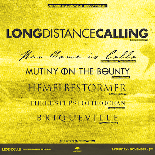 – LONG DISTANCE CALLING: il gruppo Post-Pock tedesco, proveniente da Münster, inizierà a breve la seconda parte del tour europeo, che li porterà in Italia in occasione dell’Hear The Change in veste di headliner. La band presenterà il sesto album “Boundless”, uscito nel febbraio di quest’anno.