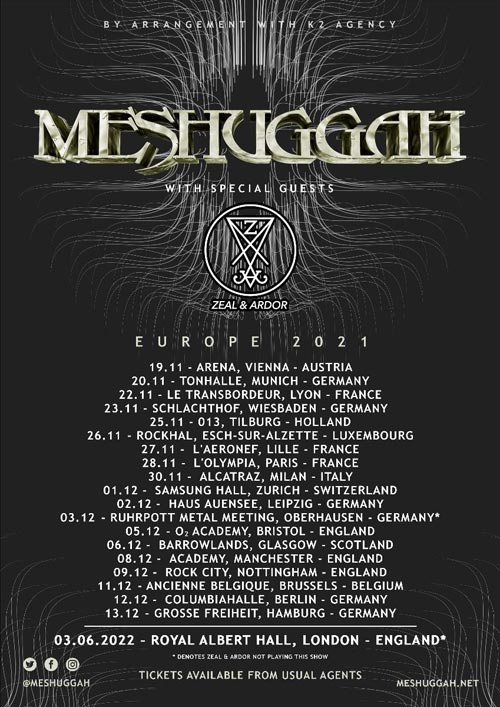 Inoltre, i MESHUGGAH suoneranno a Londra il 3 giugno 2022 alla leggendaria “Royal Albert Hall”!