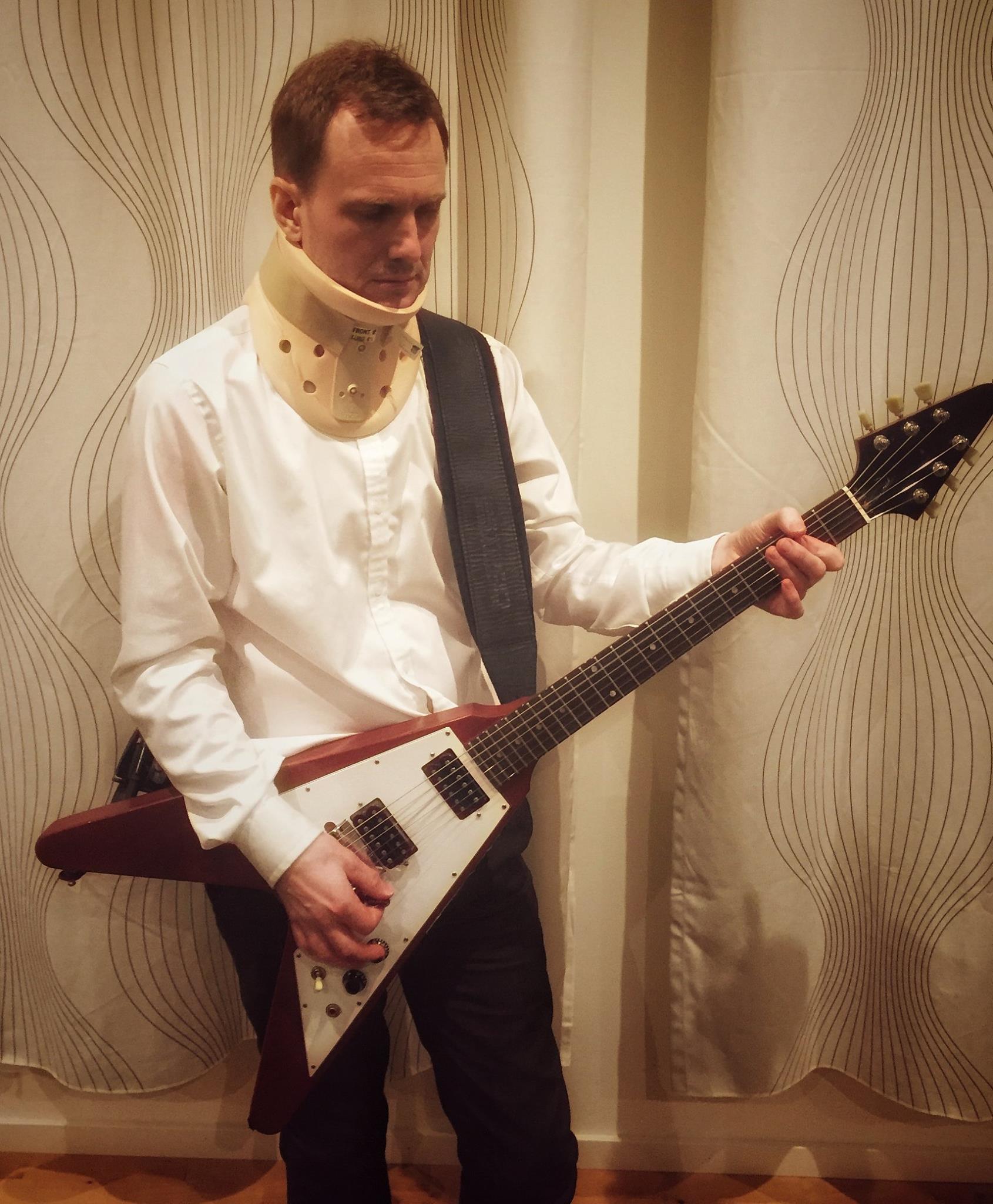 Per stabilizzare il collo devo indossare un collare per due settimane (anche sul palco), e mi hanno dato del cortisone per bloccare il dolore. Quindi ora posso dormire sul mio letto (dopo due settimane sul divano) e con un po’ di dolore e impegno posso suonare un festival con una setlist il più semplice possibile. Quindi non dobbiamo cancellare lo show.