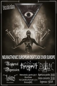 Avevo mandato un messaggio, tempo addietro, a Lord Lokhraed. Lo insultai, da buoni amici, per il fatto di tenere una cazzo di data in Italia di mercoledì sera, a 300 km da casa mia. Dubitavo di poterci andare. Ma alla fine il fascino della decadenza, di quel andare sempre più in basso mi ha tentato … ed io non resisto certamente a nessuna tentazione. E nemmeno all’amicizia che mi lega con l’enigmatico frontman dei Nocturnal Depression.