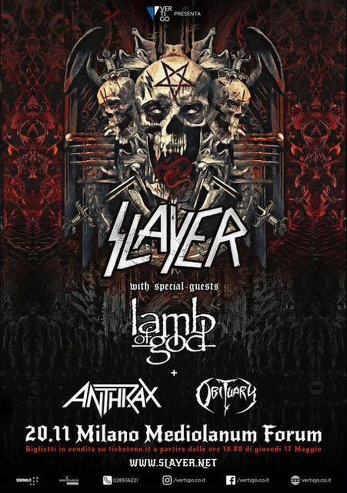 SLAYER, LAMB OF GOD, ANTHRAX, OBITUARY 20.11.2018 @ Mediolanum Forum. MI MANCHERETE!