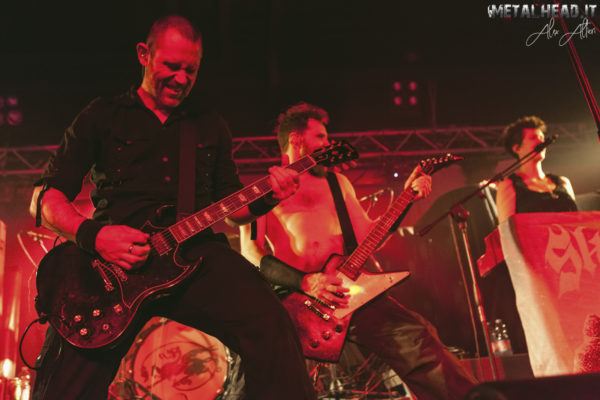 È poi la volta degli Skálmöld, che ormai tutti possiamo considerare i veri eredi dei Tyr e del loro modo così originale di fare viking metal: i fratelli Ragnarsson, che in tour conducono anche la sorella Helga come tastierista, puntano ormai con l’ultimo “Sorgir” a strutture sempre più quadrate e stentoree, sostenute dal vivo sia dalla potentissima batteria di Jón Geir Jóhannson, sia dal fatto che, nei momenti più epici, sono addirittura cinque dei sei membri a cantare e ad eseguire i cori dal vivo. Rispetto agli esordi, le keys sono appunto diventate uno dei cardini del sound, ma il folk non è del tutto sparito dal loro sound, come testimonia la conclusiva “Kvaðning”. Marziali, intensi, profondamente evocativi, gli Skálmöld convincono con la loro serietà anche un pubblico venuto essenzialmente per scherzare.