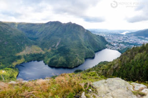 A Febbraio feci trekking sul Fløyen. Percorsi innevati. Laghi ghiacciati. Era obbligatorio ripetere l’avventura con il paesaggio estivo, verde, umido e ventoso. Si parte da casa e dopo poche centinaia di metri, puntando verso la Fløibanen… ci si rende conto che la città, la musica, i personaggi sono un tutt’uno fantastico. Non c’è il ruolo rock star diviso da quello del pubblico… ma è tutta una specie di famiglia (la sera precedente, un paio d’ore prima del concerto avevo notato Grutle Kjellson degli Enslaved seduto fuori dall’USF che chiacchierava in maniera allegra e rilassata con mezza dozzina di fans).