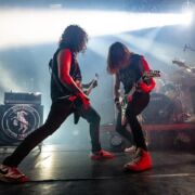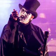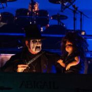 Ed infine King Diamond! Non sono mai stato un suo adepto, ma il quasi settantenne Kim Bendix Petersen è un’autentico spettacolo da vivo! Un palco stratosferico a tre piani, una scenografia da manuale horror, l’attrice impegnata in varie scene di pura decadenza umana. È palese che senza un artista del genere, la maggior parte della musica ispirata ai lati tetri e violenti del genere umano, non esisterebbe affatto. Black metal e relativo corpse painting compresi!