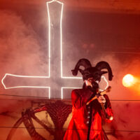 Quasi un’ora per rimuove lo scarno palco dei Candlemass e montare l’enorme scenario dei Mercyful Fate: una scalinata imponente, sottostante una imponente croce rovesciata. Con un frontman che ha visto sessantasei solstizi d’inverno ma che si rivela in perfetta forma, la band ha offerto uno spettacolo micidiale, impegnandosi in una set list frizzante, contenente pezzi delle prime tre release, ovvero l’EP “Mercyful Fate” del 1982, “Melissa” del 1983 e “Don’t Break the Oath” del 1984… oltre che ad un nuovo brano, “The Jackal of Salzburg”, il quale uscirà in un disco entro fine anno… parola di King Diamond!