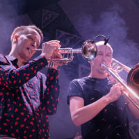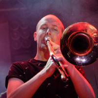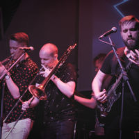Sul palco questo manipolo di artisti (con look variegato, dal fighetto di città al rockettaro convinto) è sincero, comunicativo, divertente e puro: la musica domina tutto, viene prima di tutto… tanto che l’ovvio ego degli artisti (ego necessario per salire su un palco e dar dimostrazione di sè) scompare, dando vita ad una serata di musica e divertimento che non prevedeva una vera separazione tra spettatori ed artisti, questi ultimi felici di mescolarsi tra i primi dopo lo spettacolo. Ogni tanto il bassista avanzava verso il pubblico, mostrando il suo playing prettamente metallaro. Uno dei chitarristi, anche voce, si divertiva ad intrattenere il pubblico con battute e presentazioni. La bellissima cantante alternava performance vocali immense, all’intimità con la sua tastiera, fino all’abbandono totale girovagando tra i compagni in una sorta di danza sensuale. Il pacato contrabbassista, ad un certo punto canta… e poi balla, tra l’altro dimostrando a tutti che se dentro al Revolver c’era qualcuno che sapeva ballare davvero, quello era decisamente lui. I due fiati, coppia inseparabile, sono fantastici, con il trombettista spesso in duetto vocale con la favolosa vocalist.