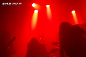 Primo approccio assoluto. Di loro conosco soltanto la provenienza, ma gli inglesi hanno lasciato il segno, nel bene e nel male. Nel bene perché il quintetto britannico ha palesato un sound fatto da grindcore, noise, doom, post black metal e blackened. Una poltiglia nella quale almeno dal vivo ha visto eccentuate le frequenze basse, creando una coltre di groove spaventosa e alienante. La band ha posto ai limiti del palco un enorme candelabro col teschio di un caprone in bella vista, più due altre capocce cornute corredate da candele in cima ai due muri di amplificatori posti ai lati della scena. Insieme a le stroboscopiche poste nei pressi della batteria che esplodevano a seconda dei momenti e degli umori della musica, la band non ha usato ulteriore illuminazione.