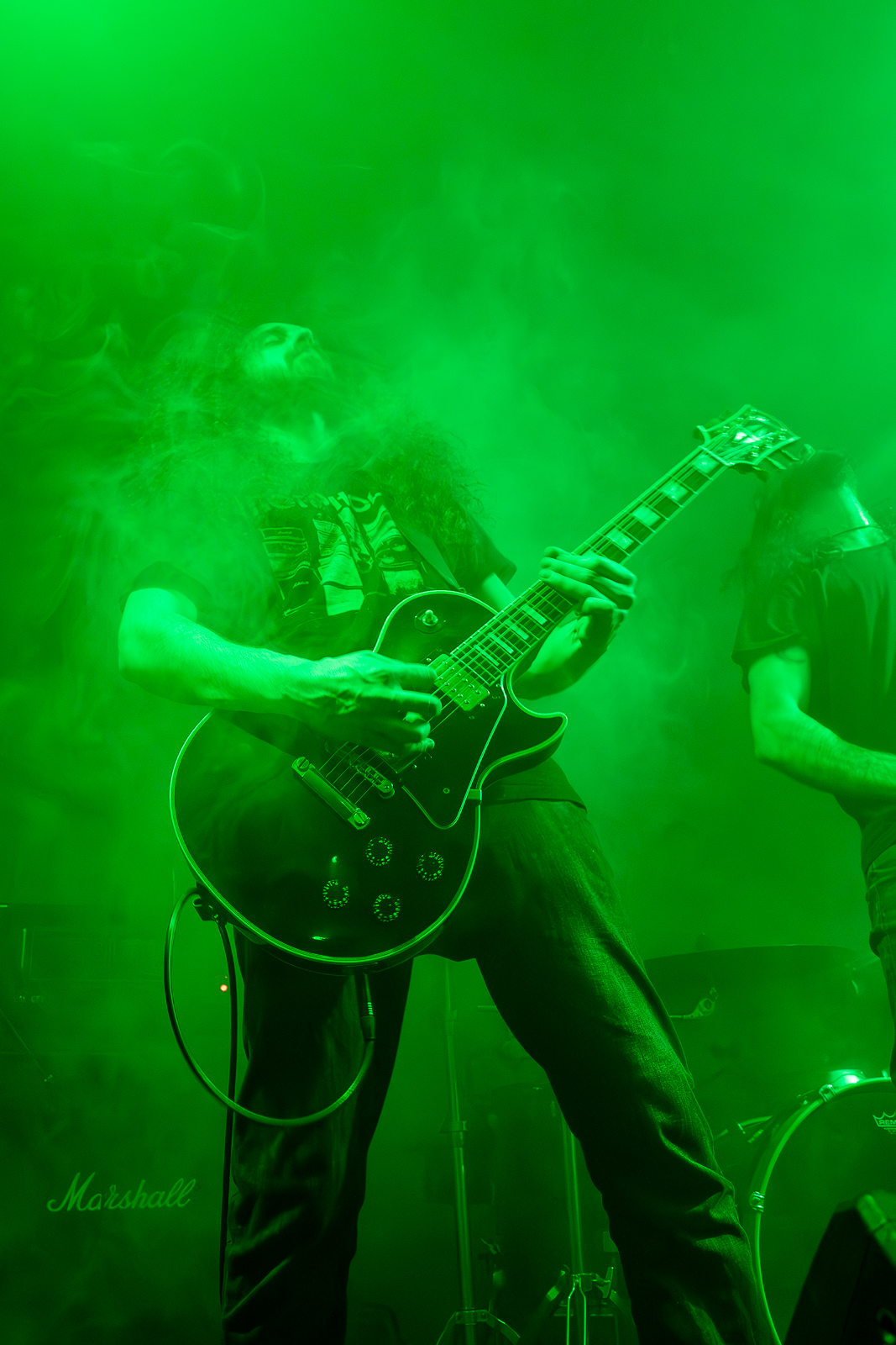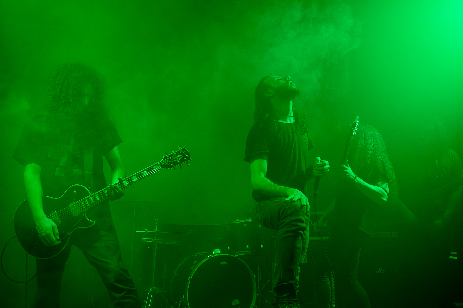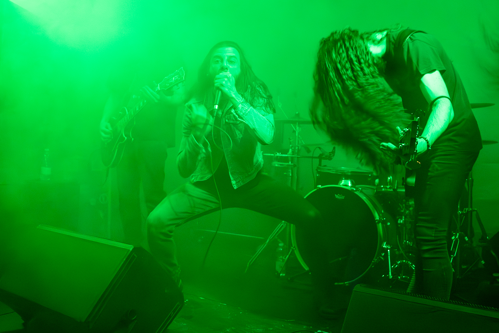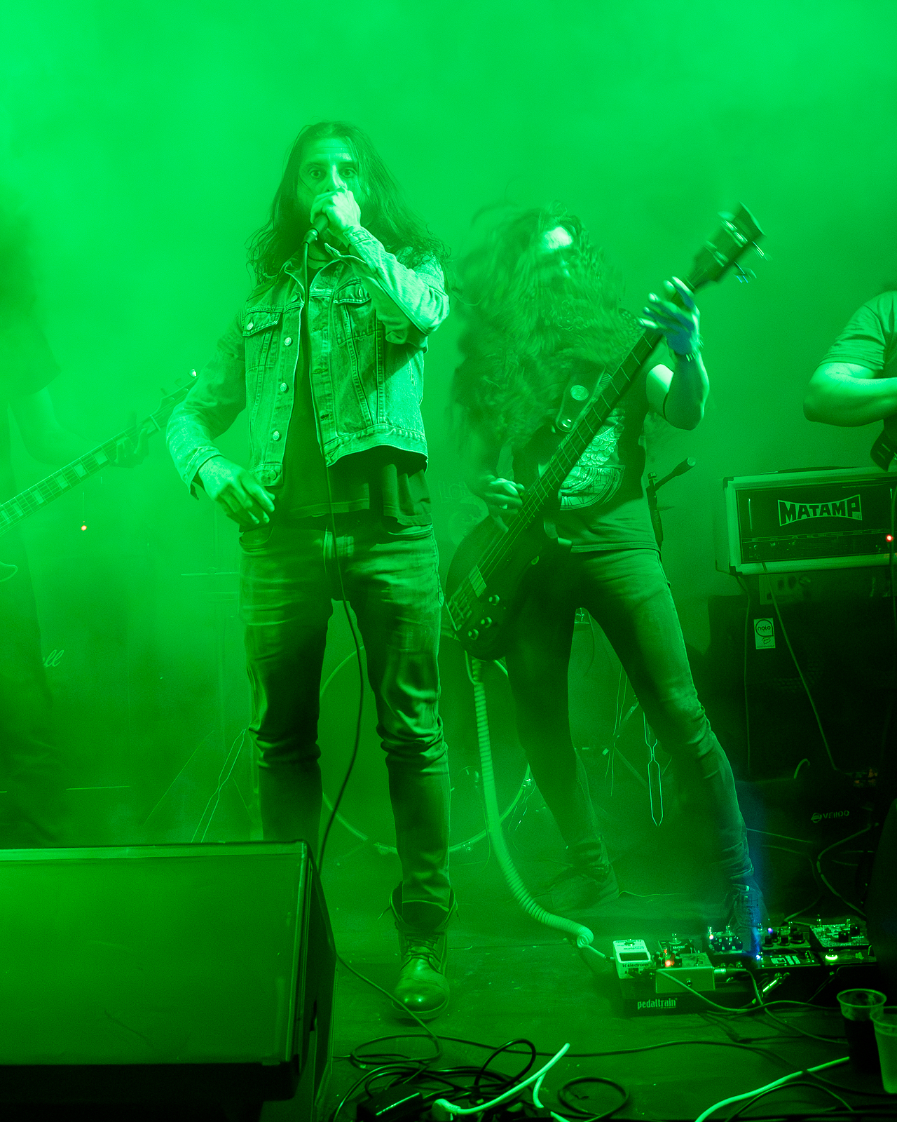 Tra rallentamenti funerei e improvvise esplosioni di distorsione, ogni brano sembrava costruire una massa sonora monolitica che schiacciava lentamente gli ascoltatori. I ragazzi hanno giocato tutto sull’atmosfera: il verde irreale delle luci, la lentezza soffocante, gli urli che emergevano dal mix come segnali radio da un pianeta ostile. L’effetto è risultato potente, straniante e perfettamente coerente con il loro approccio cupo e ricercato, che ce li fa apprezzare.
