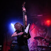 Con l’Alchemica già caldo, troppo caldo, dopo i figli del tuono salgono sul palco i mitici Angel Martyr, con il loro heavy speed che inneggia al grande metal della storia, senza scadenti modernismi, senza tanti fronzoli o delicatezza: borchie, pelle e volume a manetta! Una band che rappresenta una certezza in questo mondo debole e senza riferimenti… un esempio da seguire, un modello da imitare, sia per quanto riguarda l’atteggiamento, che l’esibizione sul palco, che la dedizione e, non ultima, quella meravigliosa ed inossidabile tendenza old school che non dimentica i grandi, visto che non hanno mancato di tributare anche il leggendario Mark Shelton.
