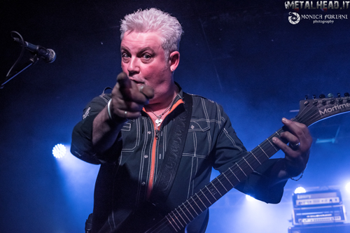 Sto uscendo. Saranno le 2 del mattino. O forse più tardi. Ho la testa per gli affari miei, sono felice, felicissimo. Sto finendo il drink, ho la sigaretta pronta. Butto un’occhiata sul palco e vedo proprio Robb Weir. Da solo. Stava recuperando materiale scenico, pezzi, pedali. Lui. Non un roadie. Lui. Uno che ha fondato questa cazzo di band nel 1978 (molti di voi lettori non erano nati o erano piccini, come il sottoscritto). Lui, un uomo, alle porte del sessantesimo inverno, che ancora scrive musica e dopo aver resuscitato una band storica, continua ad intrattenere dal palco, gira l’europa, firma autografi, è gentile e disponibile con fans, rispetta e sollecita la (nostra!) fotografa in postazione (e lei ha ricambiato facendo si che la fotocamera non perdesse un solo del concerto!).
