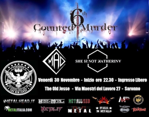 I 6th Counted Murder tornano all’Old Jesse di Saronno per presentare il nuovo album in uscita a fine 2018 via Sliptrick Records, proponendo per la prima volta dal vivo tutte le canzoni che compongono il nuovo lavoro. In apertura i MAD-Collusion e She Is Not Katherina.