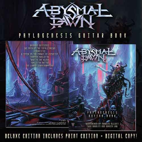 La death metal band losangelina Abysmal Dawn presenta un guitar book con all’interno le tablature dell’album “Phylogenesis”. Con queste tablature è possibile imparare a suonare le canzoni esattamente come le suona la band con trascrizioni accurate al 100% e per ogni canzone del libro sono presenti i riff, le armonie e gli assoli proprio come sono stati registrati.