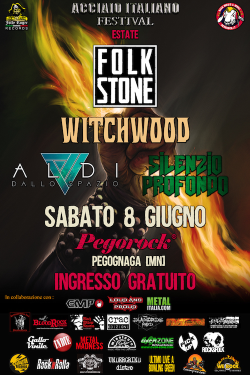 Jolly Roger Records in collaborazione con Pegorock, EMP Italia, Loud & Proud, Metalitalia, è orgogliosa di presentare una nuova edizione, “estiva”, di “Acciaio Italiano”, nella prestigiosa cornice del Pegorock (Pegognaga, Mantova) con l’esibizione di Folkstone, Witchwood, Aldi Dallo Spazio e Silenzio Profondo, ad ingresso rigorosamente gratuito, prevista per sabato 8 Giugno.
