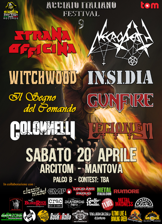 Jolly Roger Records in collaborazione con Arci Tom, Classix Metal, EMP Italia, Loud and Proud, Metalitalia, Rumore è orgogliosa di presentare la nuova, nona, edizione di Acciaio Italiano Festival, manifestazione live annuale dedicata alle migliori bands italiane della scena Hard & Heavy, che ha raggiunto negli anni crescente considerazione, rispetto ed audience.