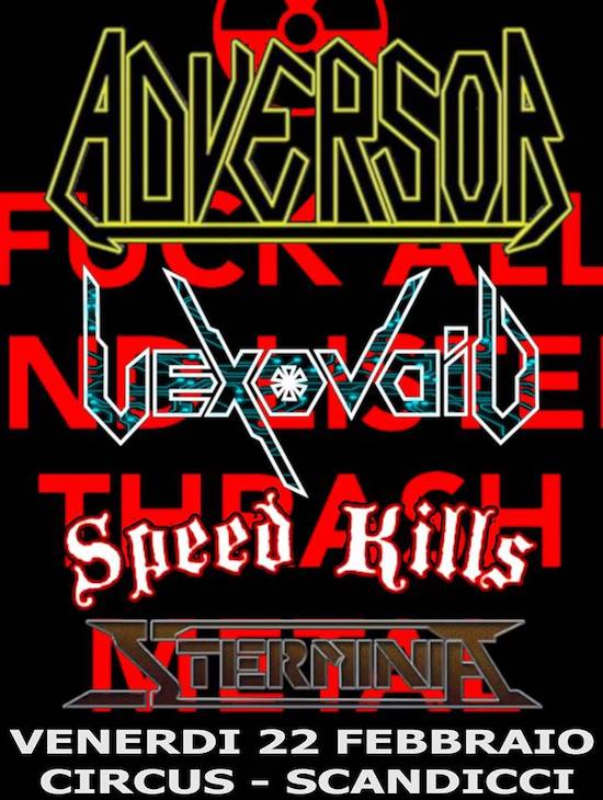 Sbarcano per la prima volta al Circus di Scandicci, Firenze, gli Adversor, con loro Vexovoid, Speed Kills e Sterminia.