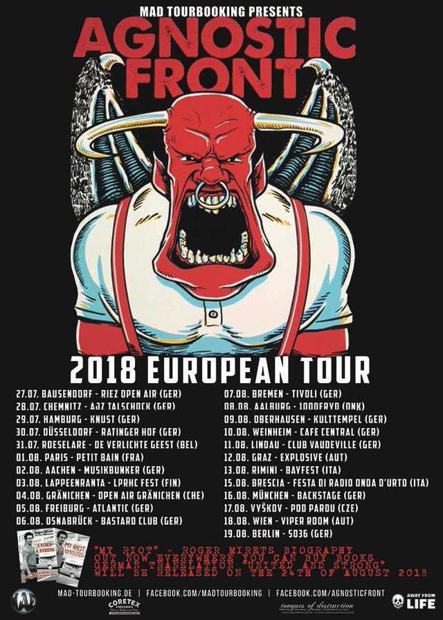 Oggi, 27 luglio, l’attesissimo tour europeo dei veterani dell’hardcore newyorkese AGNOSTIC FRONT ha inizio a Bausendorf (GER) al Riez Open Air.
