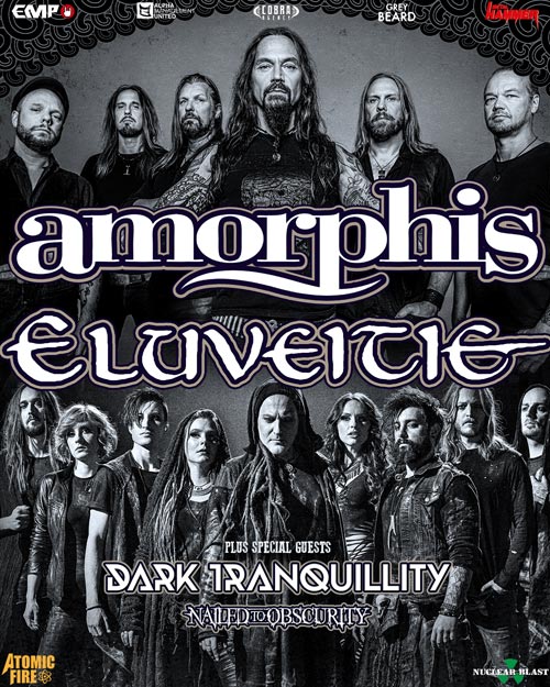 Il chitarrista degli AMORPHIS Esa Holopainen commenta: “Siamo felici di annunciare i restanti concerti del nostro tour europeo da co-headliner con gli ELUVEITIE. Entrambe le band hanno condiviso gli stessi palchi ai festival in passato ed è un grande piacere fare un intero tour insieme ora. Il fondatore degli ELUVEITIE, Chrigel Glanzmann, ha anche suonato nei nostri album ‘Under The Red Cloud’ e ‘Queen Of Time’, quindi il legame musicale è assolutamente perfetto. Dopo che i nostri amici di DARK TRANQUILLITY e NAILED TO OBSCURITY sono stati confermati per questo tour, è inutile dire che questa line-up è più che epica. Prendete i biglietti, gente!”.