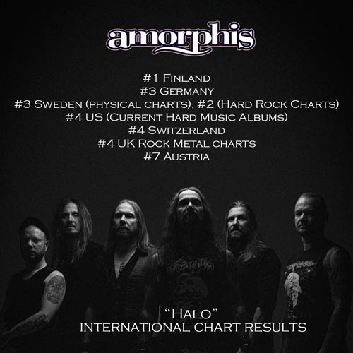 Che settimana impegnativa per le leggende del metal finlandese AMORPHIS! Non solo il loro ultimo disco “Halo” (recensione QUI) è entrato al primo posto della classifica finlandese, ma ha raggiunto la top 10 anche di molti altri paesi:#1 Finlandia