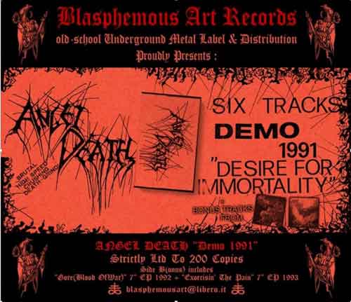 Blasphemous Art Records presenta: Angel Death – “Demo 1991 – Desire For Immortality” (death metal), Cassette – OUT NOW!