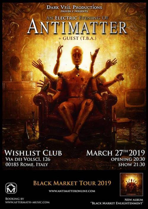 Antimatter tornano a Roma il prossimo 27 marzo, ospiti ancora una volta della Dark Veil Productions, per l’esclusiva data italiana del tour europeo di promozione del loro settimo studio album, quel “Black Market Enlightenment” pubblicato lo scorso novembre e subito affermatosi con l’unanimità entusiasta di pubblico e critica come una delle migliori uscite del 2018. L’ennesimo grande disco, introspettivo ed oscuro come l’intera discografia della band ma anche potentemente autobiografico, che Mick Moss e i suoi eseguiranno live nel loro “Electric Evening” con l’intensità espressiva che li contraddistingue sul palco, lasciando il dovuto spazio agli highlight dell’ormai lunga e prospera carriera.