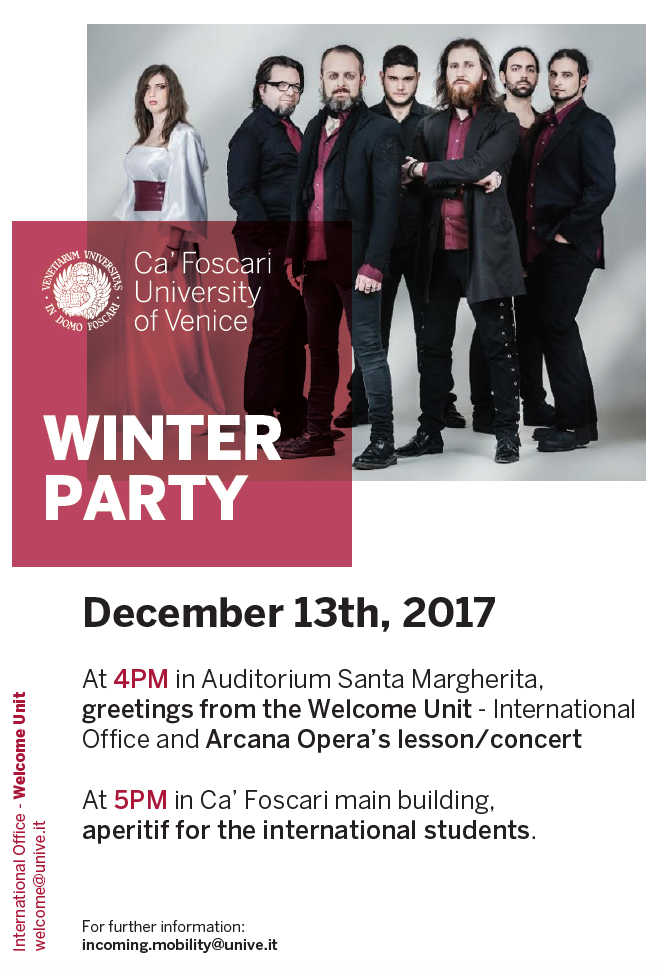 Il 13 Dicembre alle ore 16 si terrà infatti il Winter Party all’Auditorium Santa Margherita, Dorsoduro 3689 / Androne sede centrale Ca’ Foscari.