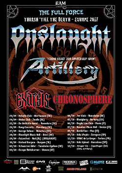 I power thrashers danesi ARTILLERY stanno per partire per il tour europeo con gli ONLSAUGHT, con ben tre date in Italia .