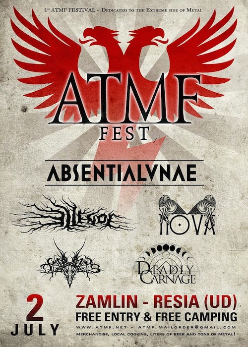 Domenica 2 Luglio 2017 si svolgerà il primo festival ufficiale open-air di ATMF, all’interno della cornice dell’Eresia Metalfest presso Resia, località ZAMLIN, in provincia di Udine. La line-up confermata vede come co-headliners ABSENTIA LUNAE & NOVA ed avrà come ospiti gli austriaci ELLENDE, i francesci CORPUS DIAVOLIS e gli Italiani DEADLY CARNAGE.
