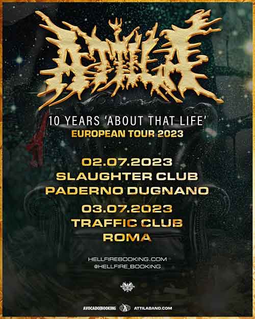 Dopo il concerto al Legend di questo marzo, Hellfire Booking Agency annuncia due nuove tappe italiane per gli Attila nel mese di luglio.
