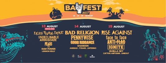 Bay Fest 2017 si svolgerà il 13, 14 e 15 di agosto presso il Parco Pavese di Bellaria Igea Marina (RN), una location incantevole a due passi dal mare. Bay Fest è infatti l’occasione perfetta per passare un Ferragosto alternativo, con fiumi di birra e il meglio del punk rock mondiale, il tutto unito a sole, mare e relax sulle spiagge della riviera Romagnola.