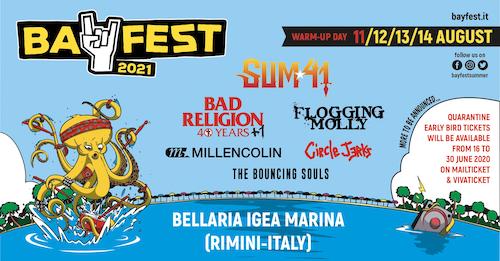 La priorità per il 2021 resta la line up artistica, l’aggiunta di Sum 41 si affianca a quella di due mostri sacri come Bad Religion e Circle Jerks, di band come The Bouncing Souls o Flogging Molly, e artisti storici come Millencolin saranno tra le tante band che si alterneranno sul palco del Bay Fest.