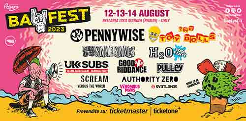 Ripasso generale sull’edizione 2023 del Bay Fest, il festival punk rock più importante d’Italia che si terrà in tre giorni nella Riviera Romagnola. Tra gli headliner del festival, al ritorno in Italia a quasi 10 anni dall’ultima volta, i mitici The Toy Dolls, trio inglese che incarna la parte divertente e spensierata del punk. Attesi on stage anche i Pennywise, da oltre 25 anni sulle scene, Me First & The Gimme Gimmes, la all-star-punk-rock-super-cover-band più famosa al mondo! I favolosi UK Subs, per l’ultimo concerto in Italia del loro tour di addio.