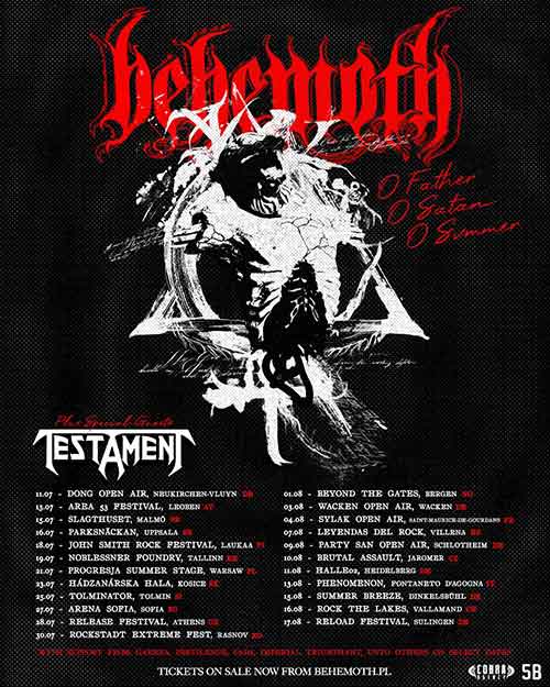 “O Father, O Satan, O Svmmer 2024 Tour” è la prossima scorribanda dei Behemoth che si terrà nel mese di luglio e agosto. La band blackmed detah metal passerà anche per l’Italia il 13 di agosto Fontaneta D’Agogna in provincia di Novara.