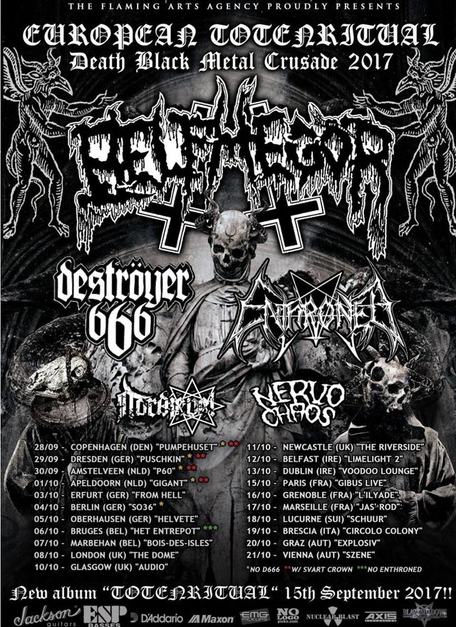 Le band di supporto saranno ENTHRONED, DESTRÖYER 666, NERVOCHAOS e NORDJEVEL.