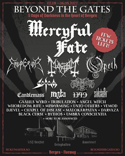 Dopo esser stato rimandato dal 2020 al 2021, il BEYOND THE GATES di Bergen in Norvegia è ora nuovamente rinviato all’anno prossimo (speriamo). Evento facebook QUI