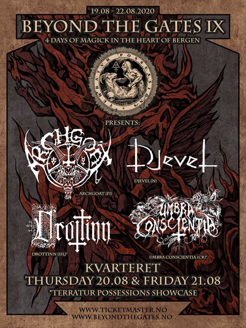 Oltre ai concerti principali che si tengono all’USF Verftet, che quest’anno ospiterà tra gli altri i Sodom e gli Opeth, ed oltre alla serata speciale presso il Grieghallen (noto nella comunità metal per essere stato lo studio dove bands quali Emperor, Mayhem, Enslaved e Immortal hanno registrato i grandi classici) con i Mercyful Fate, ci saranno altri concerti nel pomeriggio, tutti al Kvarteret, una vetrina dall’etichetta Terratur Possessions, che vedranno esibirsi il giovedì gli islandesi Drottinn (Svartidauði, Misþyrming), i costaricani UMBRA CONSCIENTIA per il loro primissimo show.