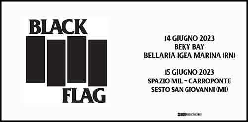 I Black Flag, band icona dell’hardcore punk a stelle e strisce, tornano in Italia per due date: il 14 giugno al Beky Bay di Bellaria Igea Marina (RN) e il 15 giugno allo Spazio Mil-Carroponte di Sesto San Giovanni (MI).