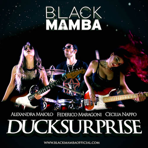 La Hard Rock band Black Mamba, capitanata da Cecilia Nappo al basso, Alexandra Maiolo alla chitarra e Federico Maragoni alla batteria, ha appena pubblicato un nuovo video e singolo strumentale intitolato “Duck Surprise”. Federico Maragoni aggiunge che «il titolo di questa canzone deriva dalla famosa sitcom britannica “Fawlty Towers”, serie televisiva comico/surreale trasmessa verso la fine degli anni 70 in Inghilterra. Abbiamo deciso quindi di creare un brano rock strumentale caratterizzato da un basso “galoppante” suonato da Cecilia Nappo, un’alternanza di temi di chitarra e accordi semplici ma d’effetto ideati da Alexandra Maiolo e un solido drum beat».