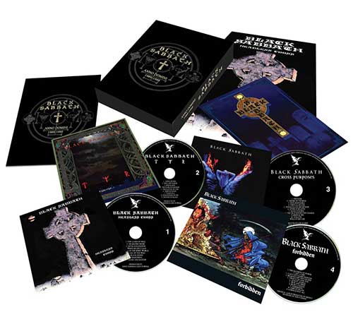 BMG esplora questo periodo prolifico dei padrini dell’heavy metal in una nuova collezione con la ristampa di quei gloriosi quattro album. “ANNO DOMINI 1989-1995” sarà disponibile dal 10 maggio 2024 nelle configurazioni 4-LP e 4-CD. Il set contiene le versioni rimasterizzate di “Headless Cross” (1989), “Tyr” (1990) e “Cross Purposes” (1994), oltre a una nuova versione di “Forbidden” (1995), remixata appositamente dallo stesso Tony Iommi.