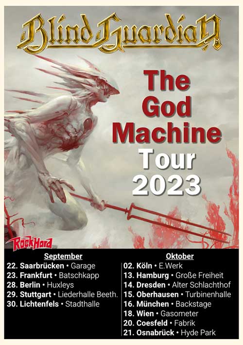 Il vocalist Hansi Kürsch dichiara: “Siamo felici di annunciare queste prime date degli spettacoli del prossimo anno del ‘The God Machine Tour’. Ne annunceremo altre. Non perdetevi la magia di quanto il Guardiano arriva in città. Oppure, come disse David Bowie: ‘The God Machine’ sta arrivando e faremo un festa! E chi sono io per non permetterlo? È arrivata l’ora!”