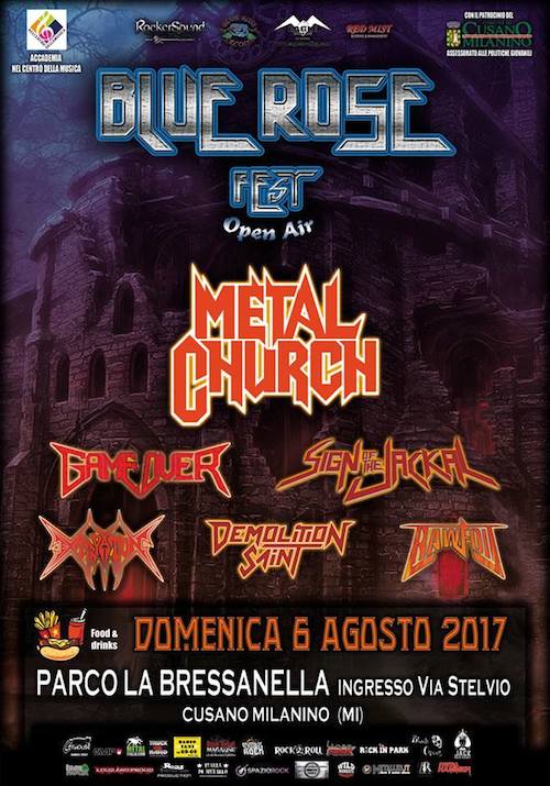 Dopo il successo ottenuto la scorsa estate, i METAL CHURCH di Mike Howe e soci tornano in Italia per un unico spettacolo nazionale in occasione del BLUE ROSE FEST Open Air, manifestazione voluta fortemente dall’ormai storico locale per festeggiare insieme un anno di successi e prepararsi alla nuova stagione invernale nel migliore dei modi. L’appuntamento è previsto per il 6 Agosto 2016 presso il Parco Bressanella a Cusano Milanino, per un’intera giornata di musica in un’area immersa nel verde a due passi da Milano.