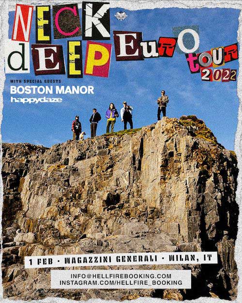 Meno di un mese dall’annuncio del gran ritorno dei Neck Deep, Hellfire Booking Agency, in collaborazione con Erocks Production, è felice di comunicare che saranno i Boston Manor e gli Happydaze ad aprire le danze della loro unica data italiana!
