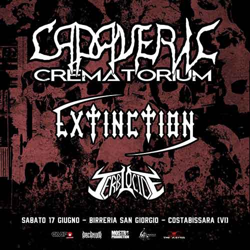 Gli Extinction sono una band thrash death metal nata nel 1995 in Puglia, il loro stile è caratterizzato da un mix equilibrato di death, thrash e venature prog, con influenze di Pantera, Sepultura, Metallica, Pestilence, Morbid Angel. I Terbiocide sono una band thrash/technical metal di Crema. Il progetto si ispira principalmente ai Violator.