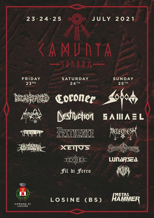Vorremmo inoltre tranquillizzare tutte le persone interessate all’evento che hanno già acquistato la prevendita o prevedono di farlo a breve: tutte le bands hanno verificato la fattibilità dei viaggi dai loro paesi d’origine e hanno confermato la loro presenza, mentre il patrocinio del Comune di Losine alla manifestazione è un chiaro segnale che tutto l’iter burocratico procede nella giusta direzione, crediamo che ormai l’unica cosa che ci divida dalla certezza di fare l’evento al 100% sia un repentino peggioramento della situazione sanitaria.