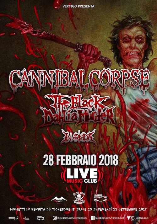 Si avvicina uno degli eventi più attesi della stagione, i CANNIBAL CORPSE, signori indiscussi del death metal made in USA, terranno un unico show nazionale il 28 Febbraio 2018 presso il Live Music Club di Trezzo Sull’Adda.