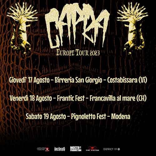 I Capra saranno in Italia per tre date previste per il prossimo agosto, precisamente a Costabissara (VI), Francavilla al Mare (CH) e Modena. Attualmente la metal/hardcore band americana è impegnata in un’aggressiva campagna di spettacoli live a supporto dell’ultimo album “In Transmission” (Blacklight Media/Metal Blade Record).