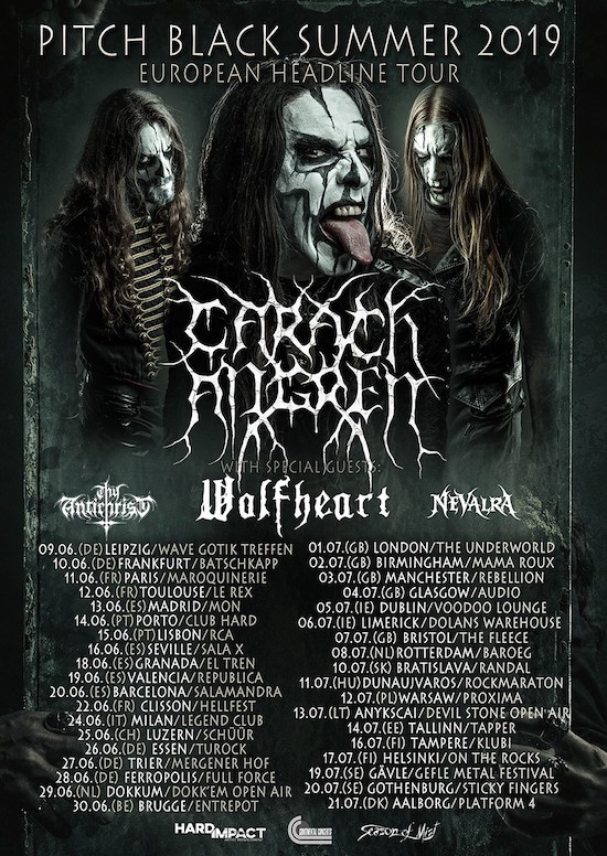 Si preparano a un lungo tour europeo i Carach Angren, iniziando domani con la partecipazione al celebre festival dedicato al gothic e al dark Treffen che si svolge ogni anno a Lipsia. La band sarà supportata da Wolfheart, Thy Antichrist e Nevalra. I Carach Angren e gli altri saranno anche in Italia e per una sola data, il 24 giugno a Milano al Legend Club.