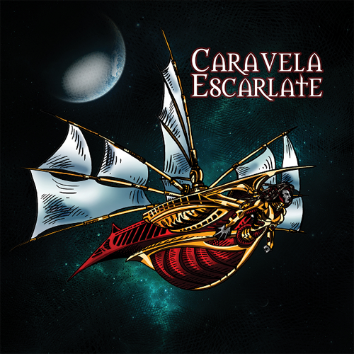 “Caravela Escarlate” significa ‘Caravella scarlatta’, e si tratta di un essere alieno dallo spazio siderale il quale può trasformare se stesso nel mezzo di trasporto che vuole, in particolare una nave. Il titolo perfetto per un retro prog album di stampo spaziale!