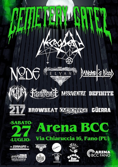 Si avvicina il Cemetery Gatez Fest 2019, evento che si terrà a Fano (PU), Sabato 27 Luglio con nomi della scena nazionale come NECRODEATH, NODE con il loro show speciale per i 25 anni di carriera, SELVANS e molti altri.